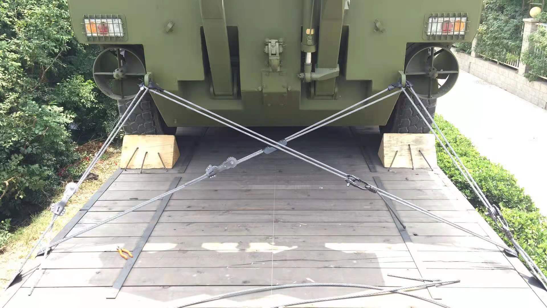 棘輪式鋼絲繩緊固器是我公司開發、研制、生產的一種貨物運輸裝載加固專利產品。經鐵道部產品質量監督檢驗中心、鐵道科學研究院檢驗,各項指標均符合《貨物裝載加固規則》技術要求。棘輪式鋼絲繩緊固器作為拉牽加固材料,可替代既有鐵路裝載加固方案中的拉牽加固材料。經呼鐵、廣鐵等鐵路局在各大鋼廠、工程機械廠經過3年多的試運,2007年鐵道部運輸局(運營貨管[2007]497號)批準同意我公司產品棘輪式鋼絲繩緊固器向全路推廣使用。