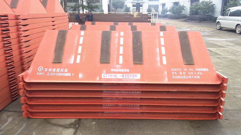 為了滿足國家提出的可持續發展要求,并根據各鋼廠實際運輸要求,我公司于2011年開發研制了一種可循環重復使用的卷鋼運載載具(以下簡稱卷鋼集裝托架)??商娲夹尾輭|臥裝方式,在實際使用過程中,大幅度降低卷鋼運輸成本,節約資源,達到可持續發展目標。并可根據鋼廠實際運營情況,提供循環回送服務。